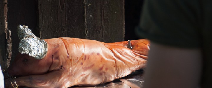 Constant werd de temperatuurmeter op het einde gebruikt om er voor te zorgen dat het varken op de juiste temperatuur boven het vuur weg kwam.