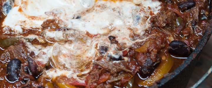 Daarnaast hadden wij een chili con carne van Jamie Oliver gemaakt, die heerlijk boven een houtvuurtje stond te pruttelen.