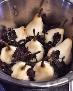 De stoofpeertjes in Hibiscus waren een probeersel, maar hebben erg goed uitgepakt.
