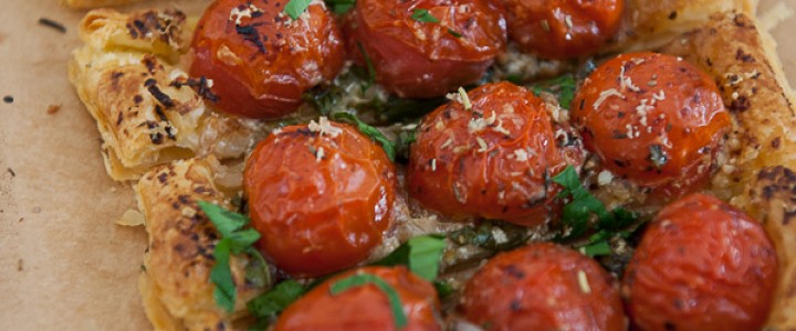 Zo had ik nog wat bladerdeeg in de vriezer en een hele bak vol cherry-tomaatjes.