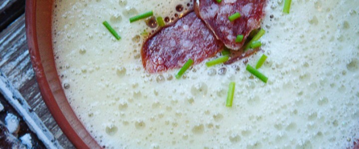 Een gefileerde paling doet het goed en diegene die niet van vis houd, stukjes droge worst passen ook goed bij deze “rokerige” soep.